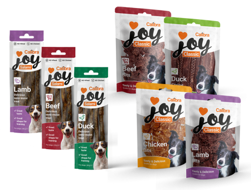 Todos los perros merecen una recompensa, aunque solo sea por hacernos la vida más amena. Demuéstreles que les quiere con las sabrosas y saludables golosinas de Calibra Joy. Nuestra gama incluye deliciosas golosinas de carne en forma de palitos y tiras más grandes. Para los perros más pequeños, tenemos prácticas versiones mini, y para todos los perros, multipaquetes a precios especiales. Las golosinas funcionales, como los palitos dentales Calibra Joy, ayudan a mantener unos dientes sanos y un aliento fresco.